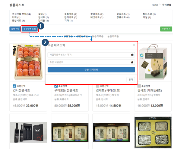 - - 차후 주문내역 조회시 사업자등록 번호와 주문비밀번호 사용
