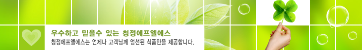 청정에프엘에스㈜는 최고의 식자재전문Mall로 업계 최초로 외식업에 최적화된 온.오프라인 회사입니다. 오프라인매장에서 구매하거나 전화주문으로 구매하던 방식에서 다양한 선택구매와 24시간 구매가능한 몰을 운영하며 좀더 다양한 식재료를 회원님들이 경험하실수 있고 지금까지 운영되던 (구)식자재업계의 불투명한 판매단가와 복잡한 유통구조를 혁신적으로 개편하면서 식자재유통에 새로운 패러다임을 선보일것을 약속드립니다.