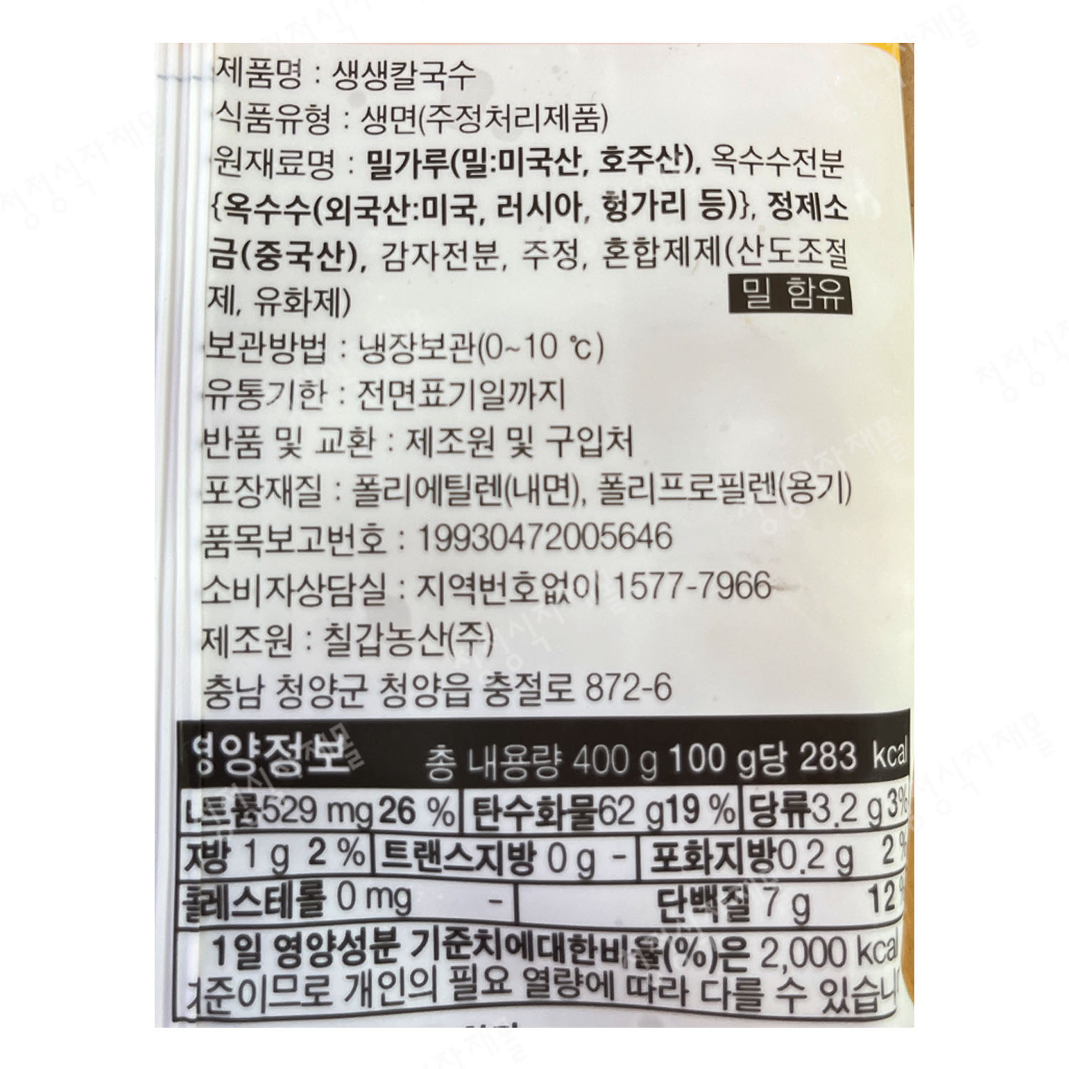 | 상품명 | 칼국수(칠갑복조리생생.400g.냉장) | 식품유형 | 상세설명참조 |