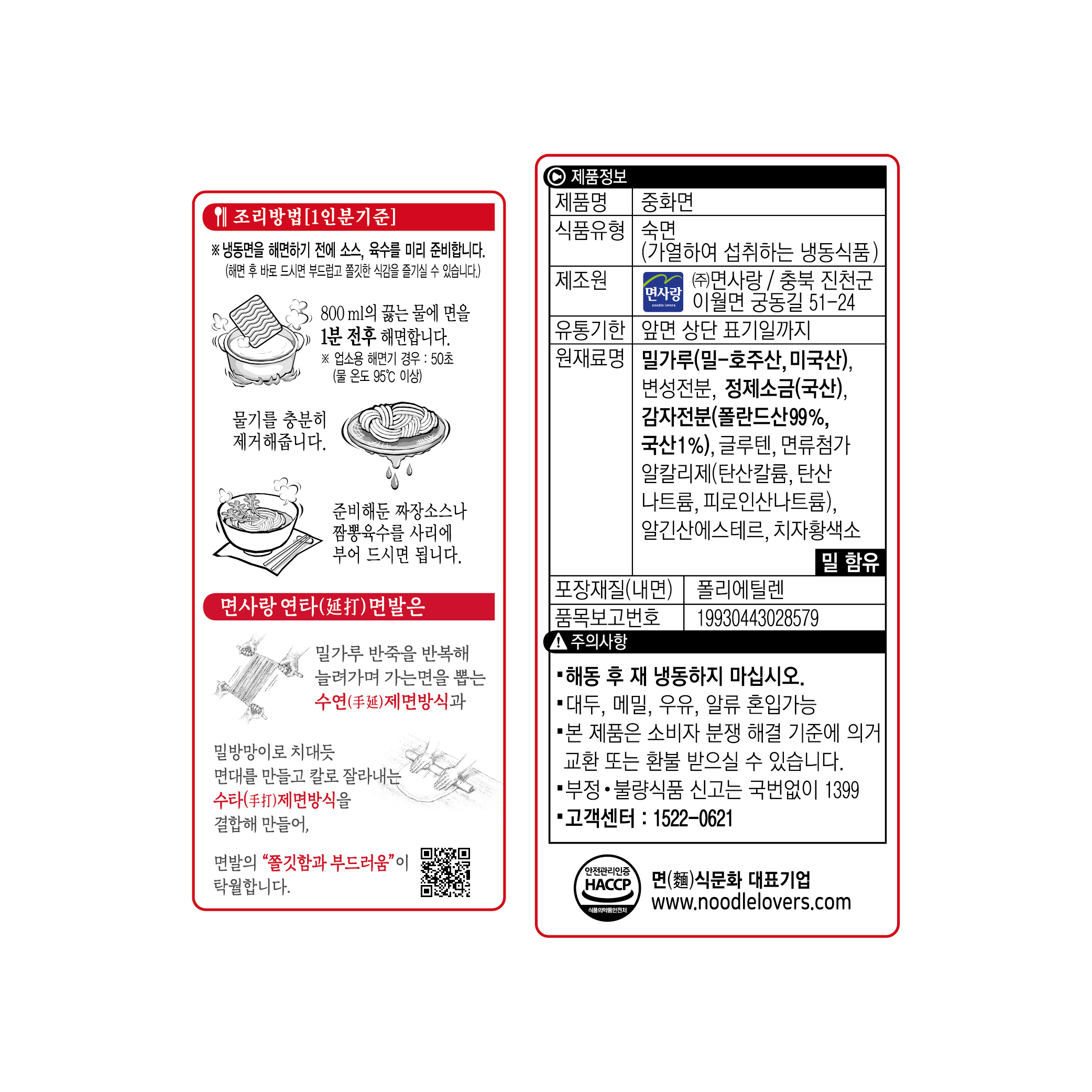 | 상품명 | 냉동중화면(전문점용.면사랑.230g*5개) | 식품유형 | 상세설명참조 |