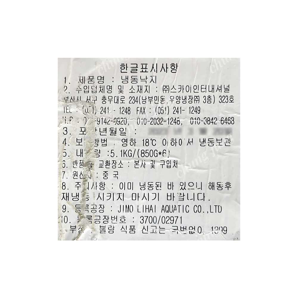 | 상품명 | 낙지(4미.200-300/850g*6팩.중국)박스판매 | 식품유형 | 상세설명참조 |