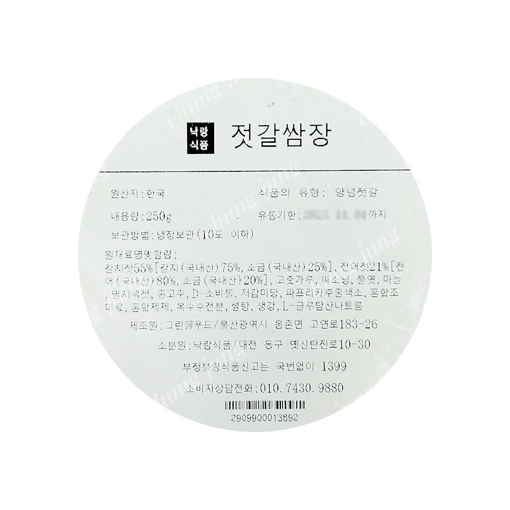 | 상품명 | SM/젓갈쌈장(낙랑식품,250g,국내산) | 식품유형 | 상세설명참조 |