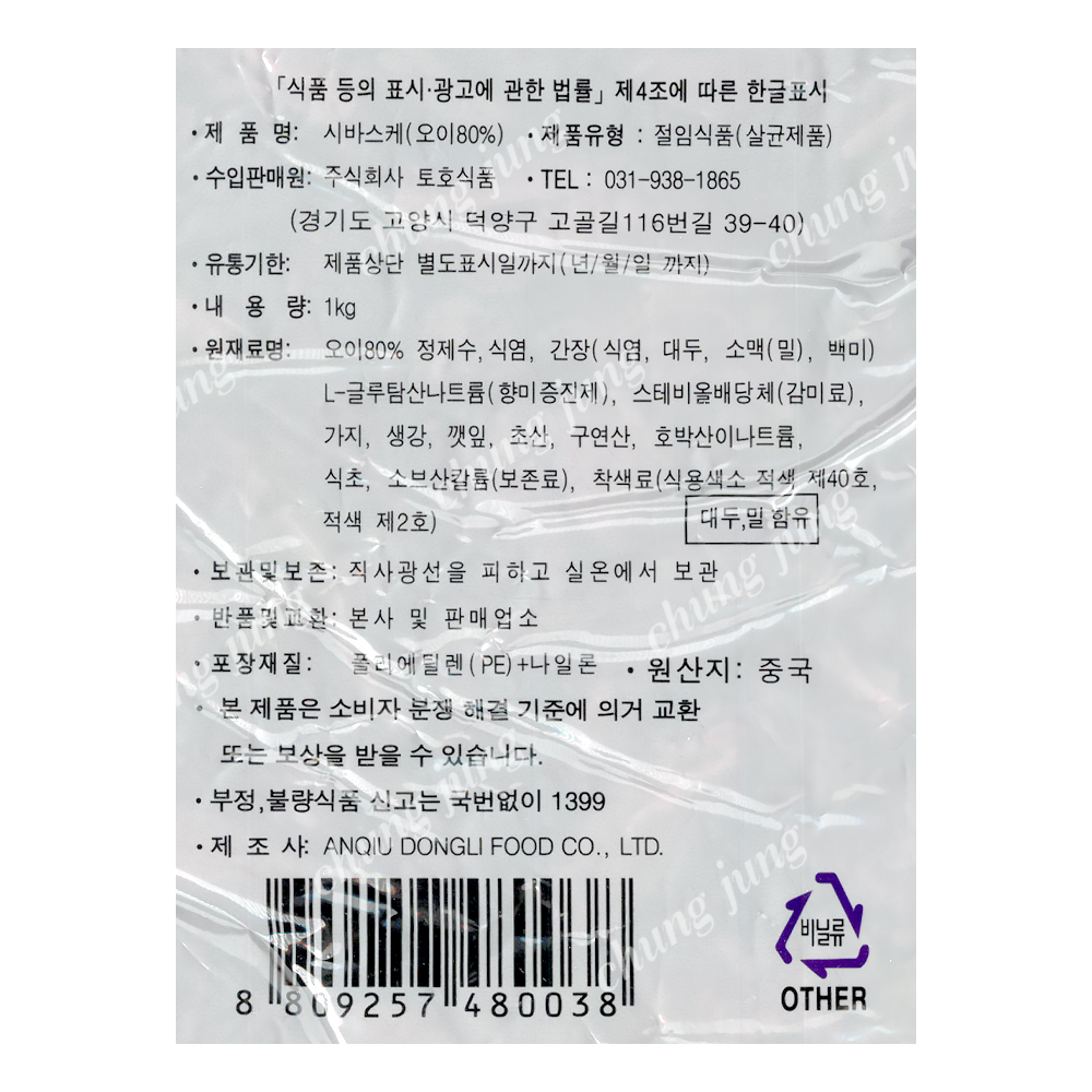 | 상품명 | 시바스케(오이&가지절임,토호,1kg)) | 식품유형 | 상세설명참조 |