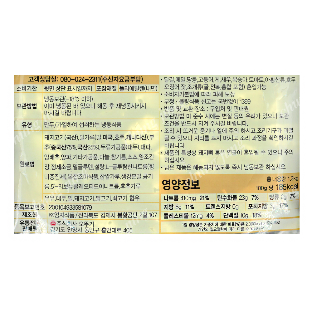 | 상품명 | 만두(물,정성가득,오쉐프,1.3kg) | 식품유형 | 상세설명참조 |