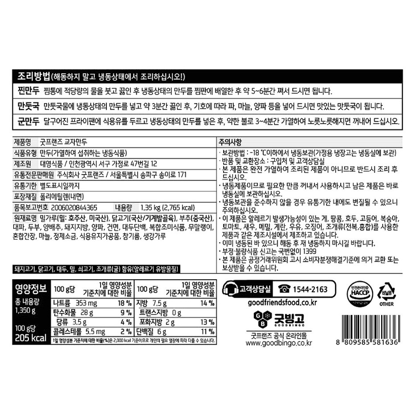 | 상품명 | 만두(교자,굿프랜즈,1.35kg) | 식품유형 | 상세설명참조 |