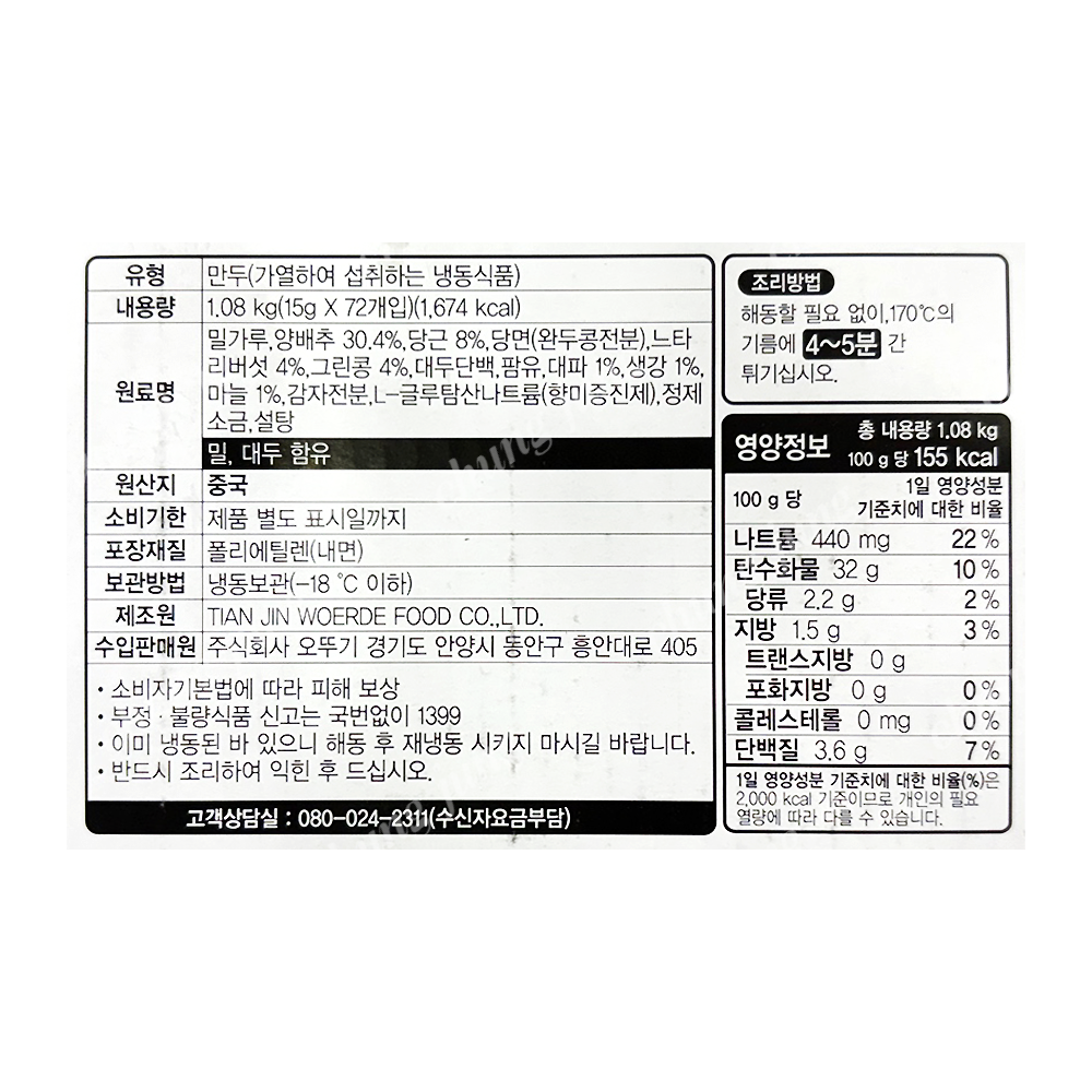 | 상품명 | 춘권(바삭바삭야채춘권,오뚜기,1.08kg) | 식품유형 | 상세설명참조 |