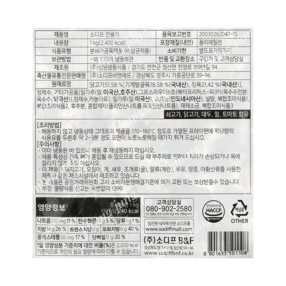| 상품명 | 깐풍기(소디프,1kg) | 식품유형 | 상세설명참조 |