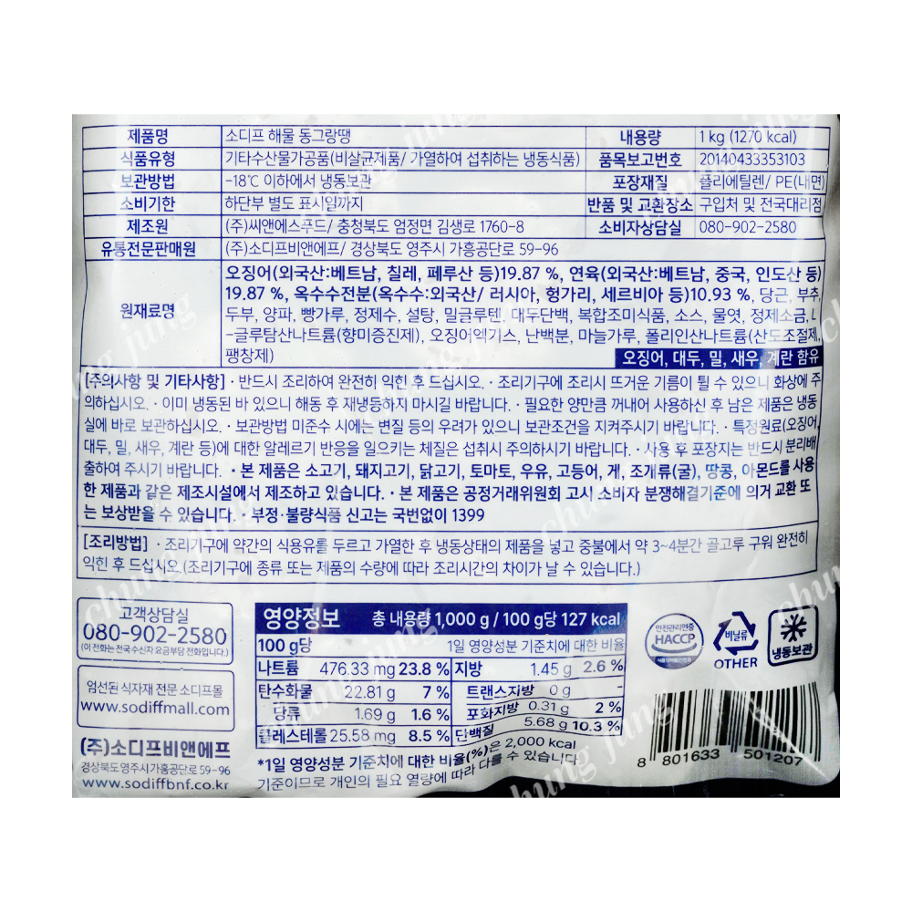 | 상품명 | 동그랑땡(해물,소디프,1kg) | 식품유형 | 상세설명참조 |