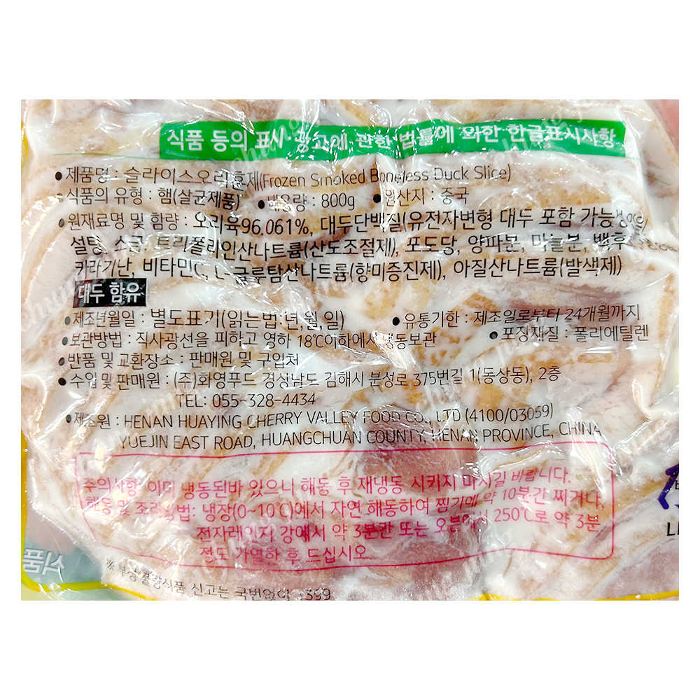 | 상품명 | 훈제오리(슬라이스,미덕,800g) | 식품유형 | 상세설명참조 |