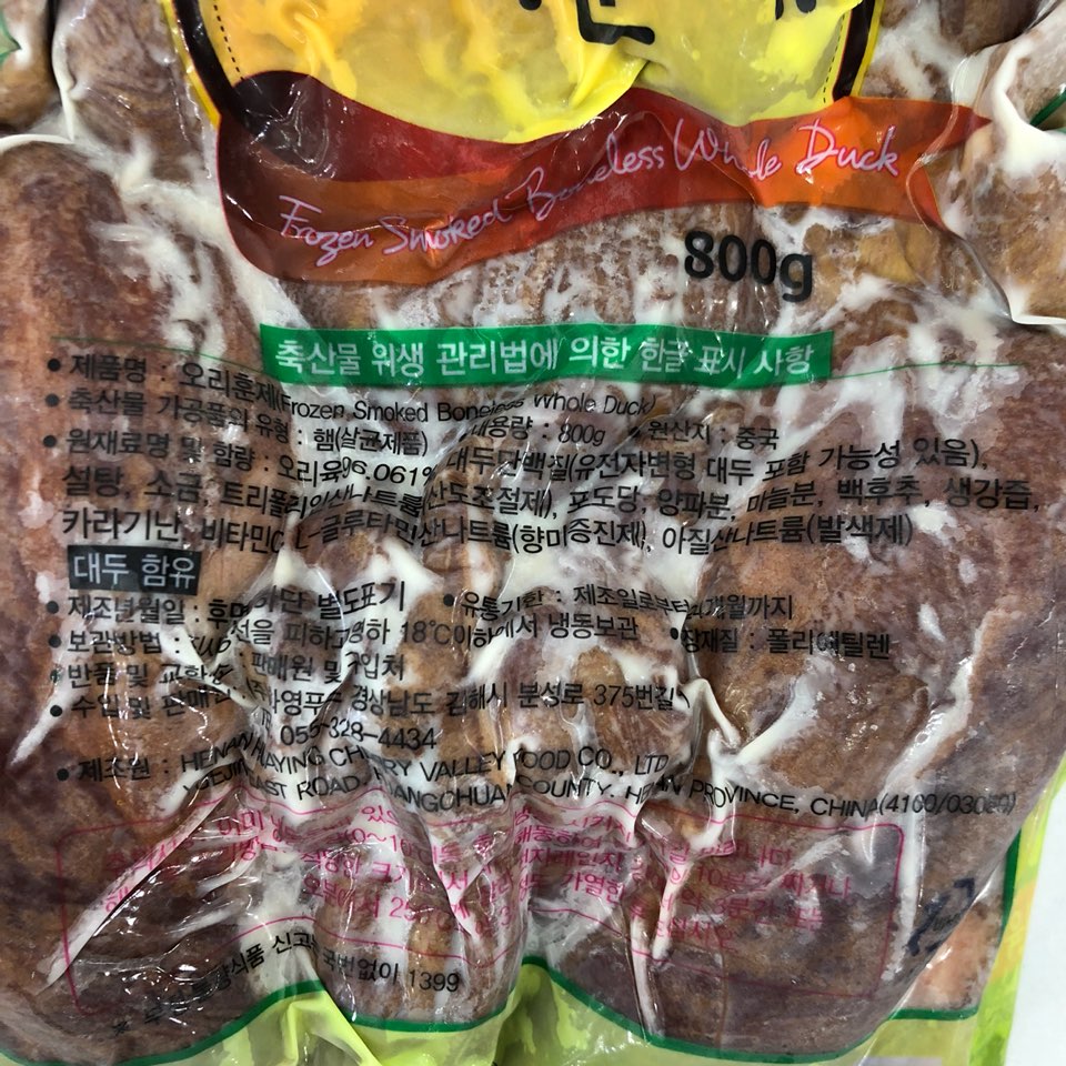 | 상품명 | 훈제오리(완포,미덕,800g) | 식품유형 | 상세설명참조 |