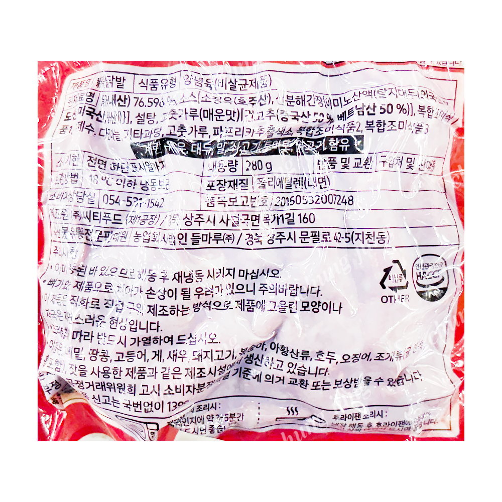 | 상품명 | 닭발(튜립불,국내산,280g) | 식품유형 | 상세설명참조 |