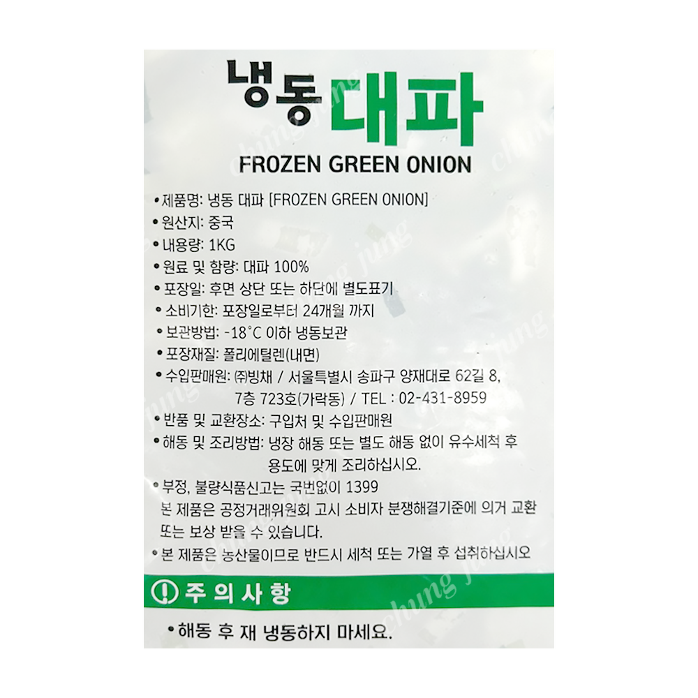 | 상품명 | 냉동야채(대파5mm(슬),농우,중국,1kg) | 식품유형 | 상세설명참조 |
