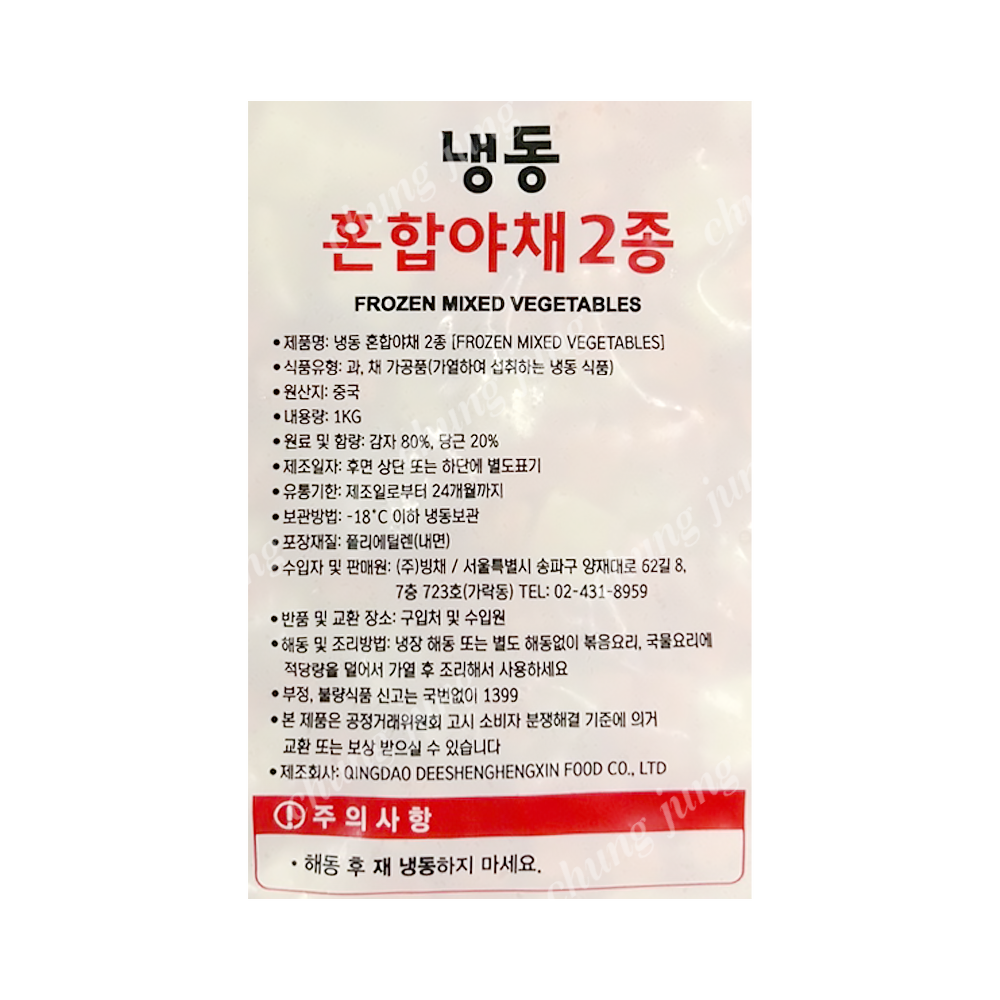 | 상품명 | 냉동야채(혼합2종,농우,중국,1kg) | 식품유형 | 상세설명참조 |