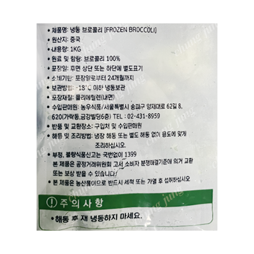 | 상품명 | 냉동야채(브로콜리,농우,1kg,중국산) | 식품유형 | 상세설명참조 |