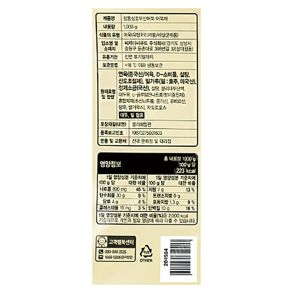 | 상품명 | 어묵(채(냉동),삼호,1kg) | 식품유형 | 상세설명참조 |