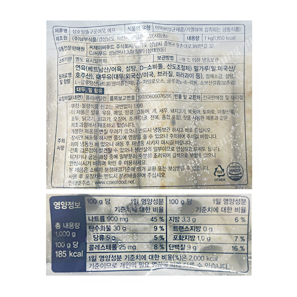 | 상품명 | 어묵(알뜰구운(냉동),삼호,1kg) | 식품유형 | 상세설명참조 |