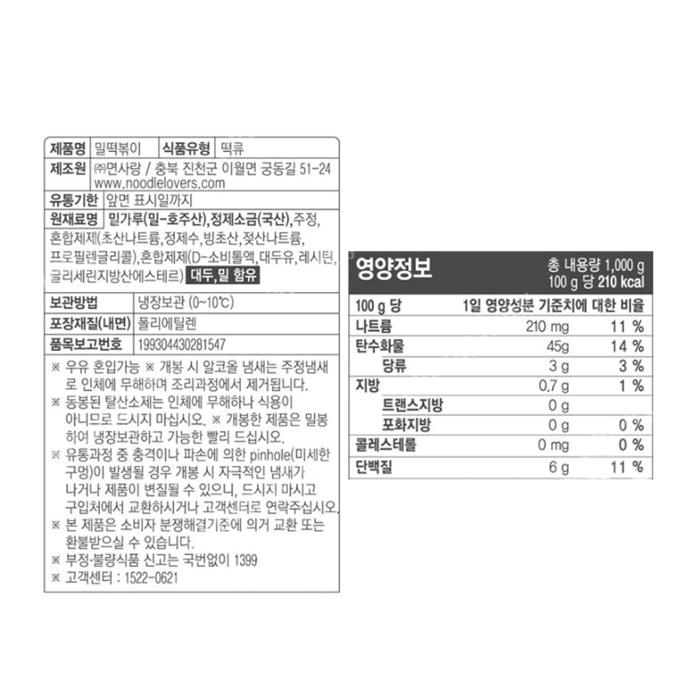| 상품명 | 떡볶이떡(밀,면사랑,1kg) | 식품유형 | 상세설명참조 |