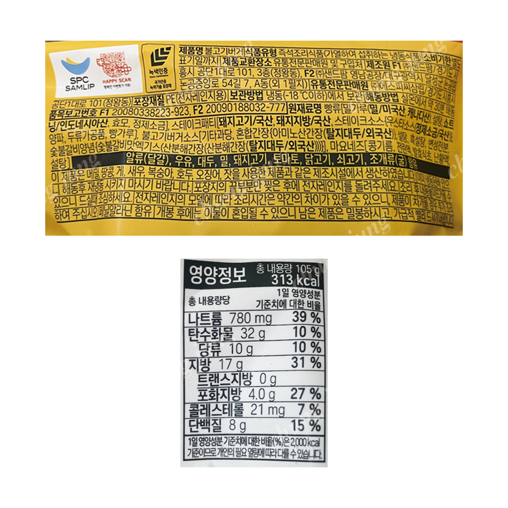 | 상품명 | 냉동빵(불고기버거,삼립,105g) | 식품유형 | 상세설명참조 |