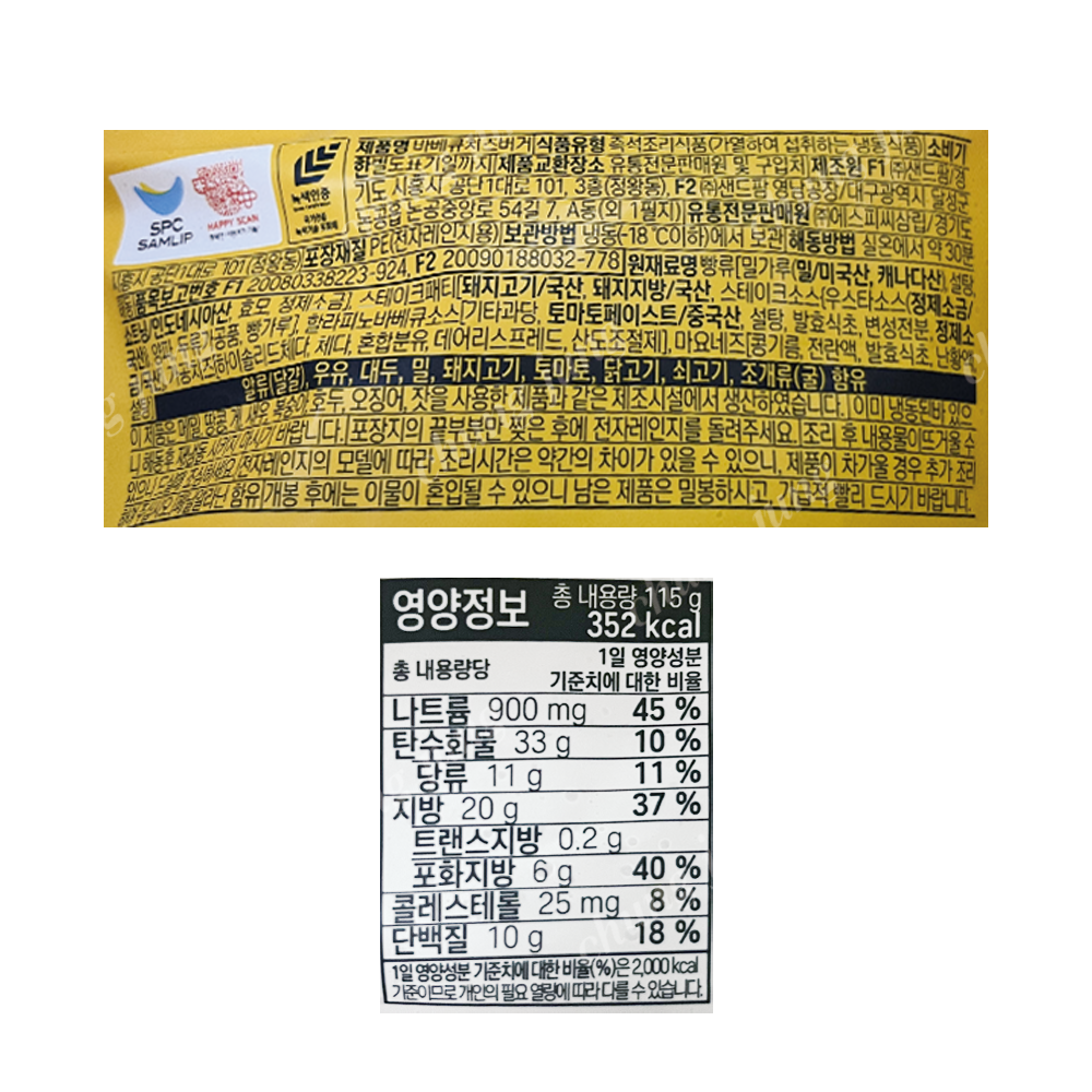 | 상품명 | 냉동빵(바베큐치즈버거,삼립,115g) | 식품유형 | 상세설명참조 |