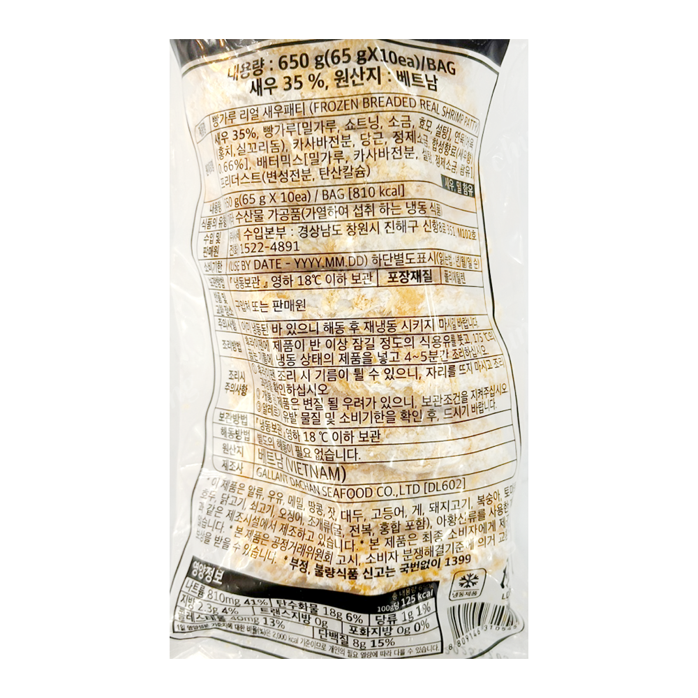 새우패티(리얼빵가루.사세.냉동.10입)650g |