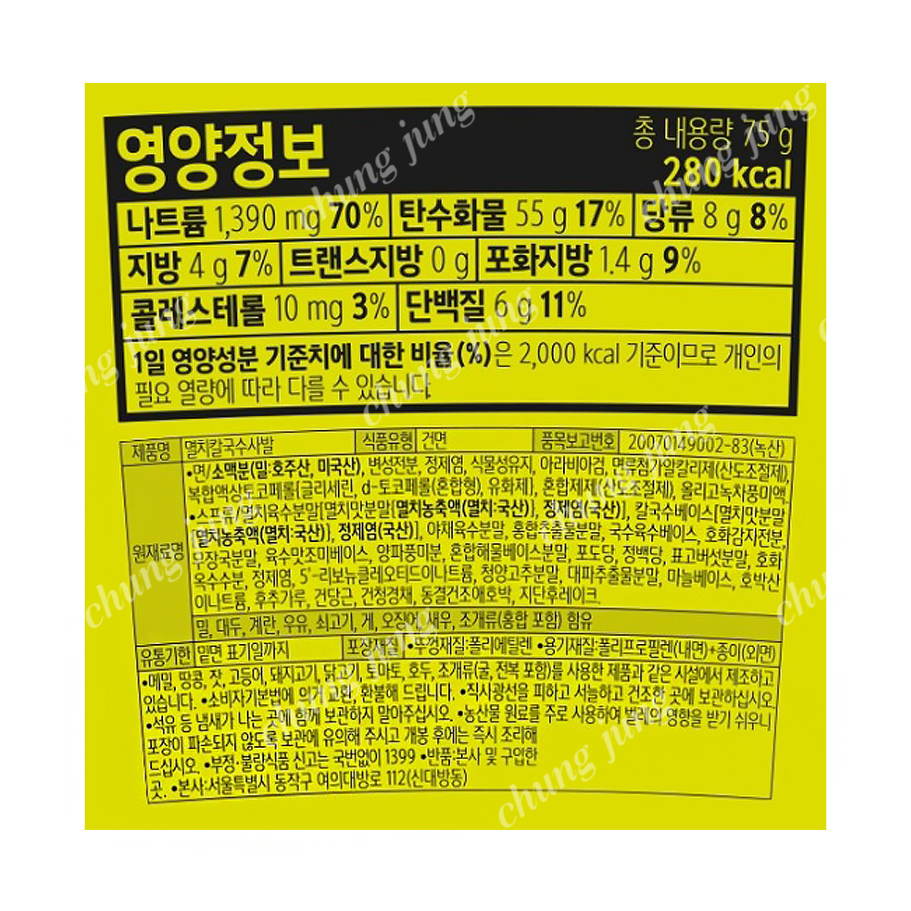 | 상품명 | 컵라면(멸치칼국수,농심,75g) | 식품유형 | 상세설명참조 |
