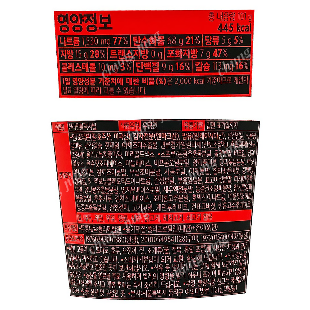 | 상품명 | 컵라면(신라면블랙,농심,101g) | 식품유형 | 상세설명참조 |