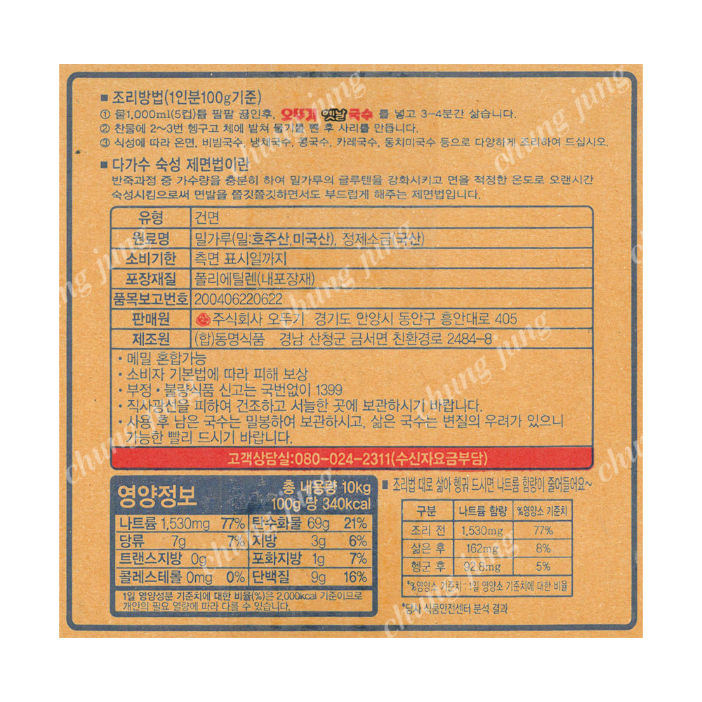 | 상품명 | 국수(옛날국수,오뚜기,10kg) | 식품유형 | 상세설명참조 |