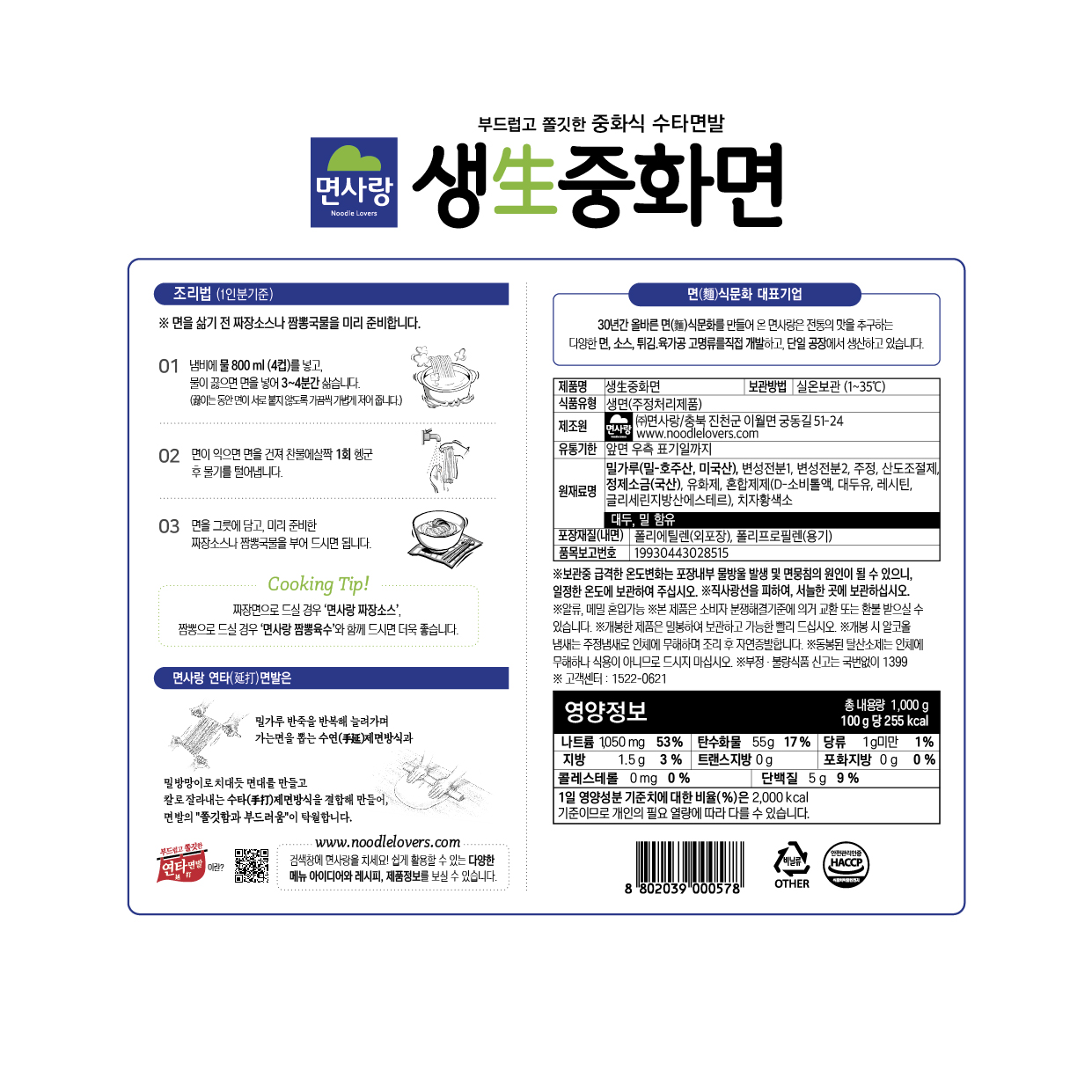 | 상품명 | 중화면(생,냉장,면사랑,1kg) | 식품유형 | 상세설명참조 |