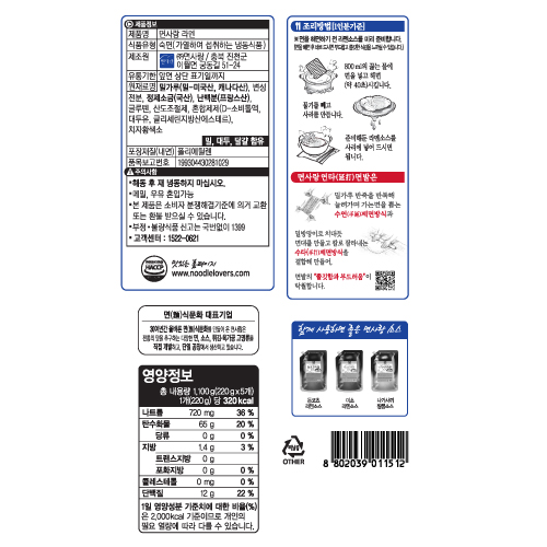 | 상품명 | 라멘(일본식,냉동,면사랑,220g*5) | 식품유형 | 상세설명참조 |