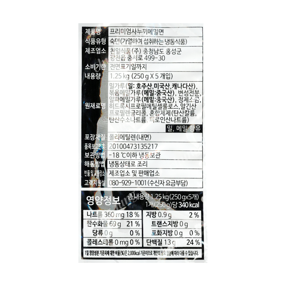 | 상품명 | 메밀면(사누끼(프리미엄),천일,250g*5입) | 식품유형 | 상세설명참조 |