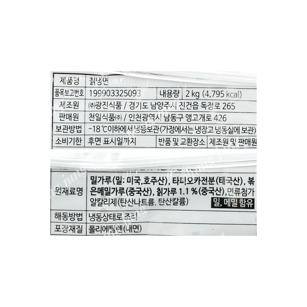 | 상품명 | 냉면(칡,천일,2kg) | 식품유형 | 상세설명참조 |