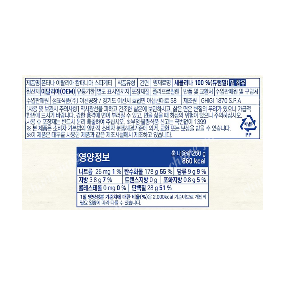 | 상품명 | 스파게티면(이탈리아캄파니아,폰타나,250g) | 식품유형 | 상세설명참조 |