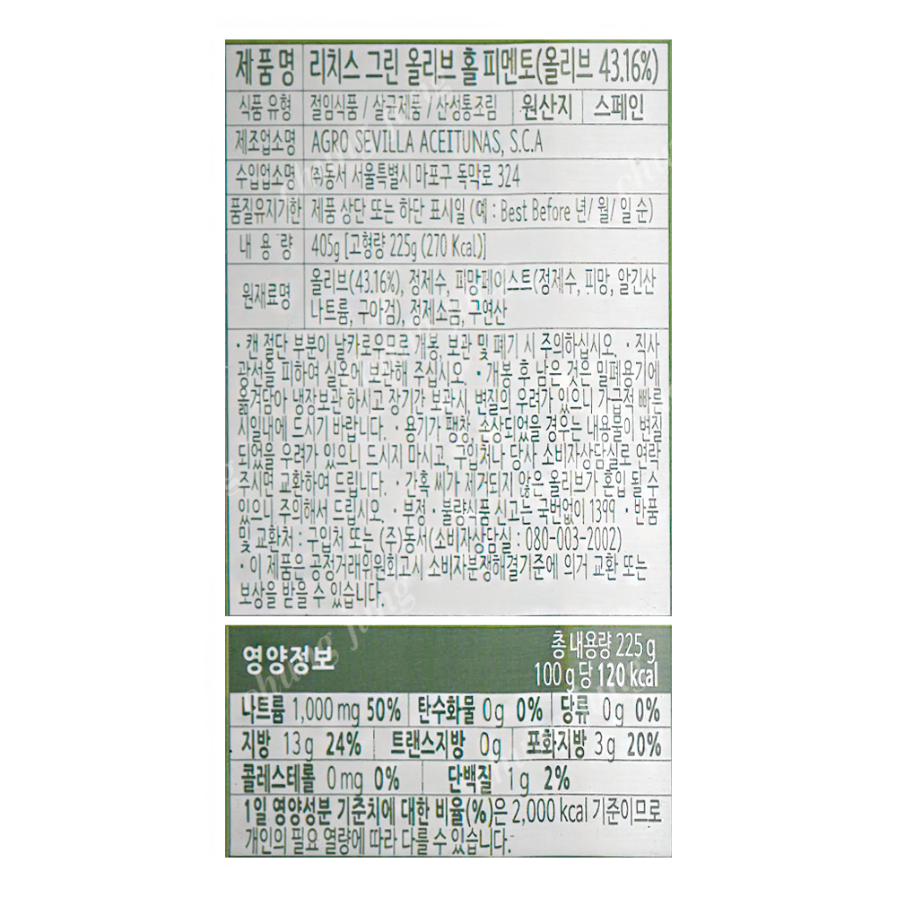올리브(그린,홀,피망,리치스,405g)