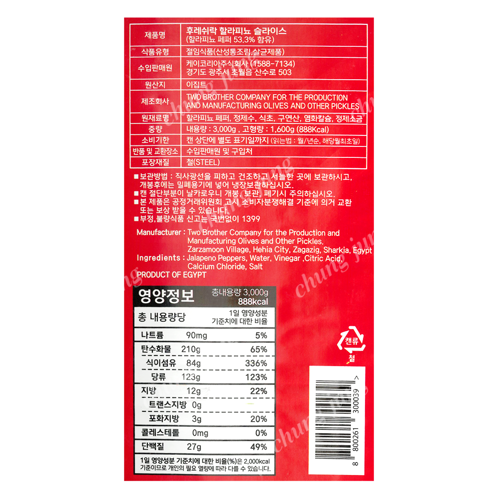 | 상품명 | 할라피뇨(슬,후레쉬락,3kg) | 식품유형 | 상세설명참조 |