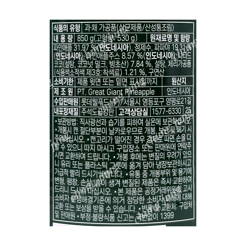 | 상품명 | 후르츠칵테일(롯데,850g) | 식품유형 | 상세설명참조 |