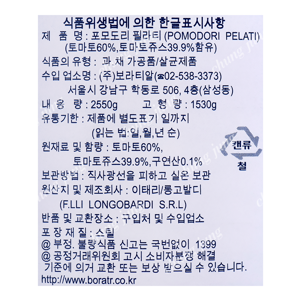 | 상품명 | 토마토(홀,롱고발디,포모도리,2.55kg) | 식품유형 | 상세설명참조 |