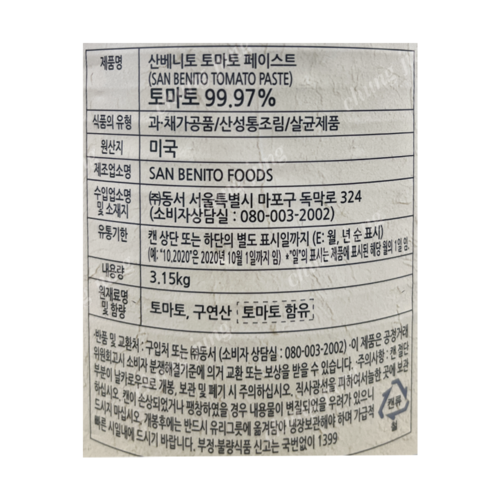 | 상품명 | 소스(산베니토토마토페이스트,동서,3.15kg) | 식품유형 | 상세설명참조 |
