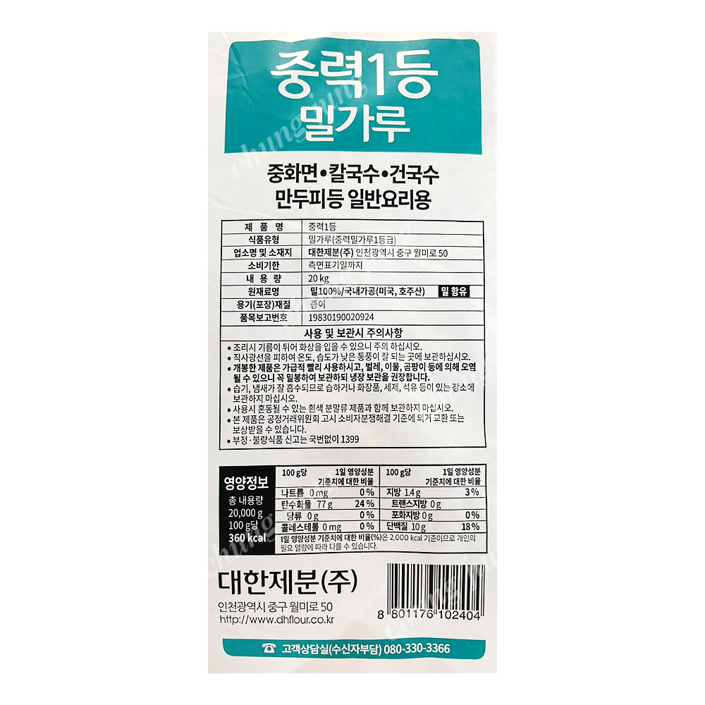 | 상품명 | 밀가루(중력1등,곰표,20kg) | 식품유형 | 상세설명참조 |