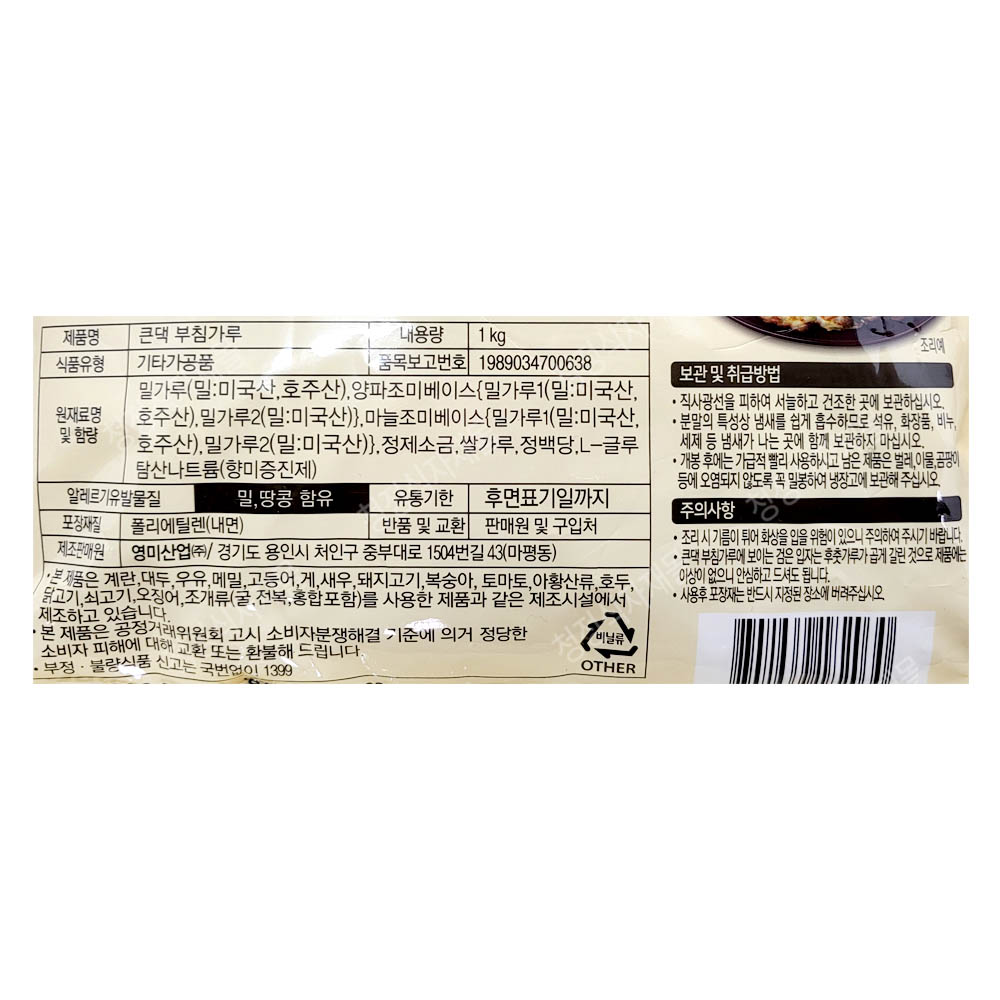| 상품명 | 부침가루(영미,큰댁,1kg) | 식품유형 | 상세설명참조 |