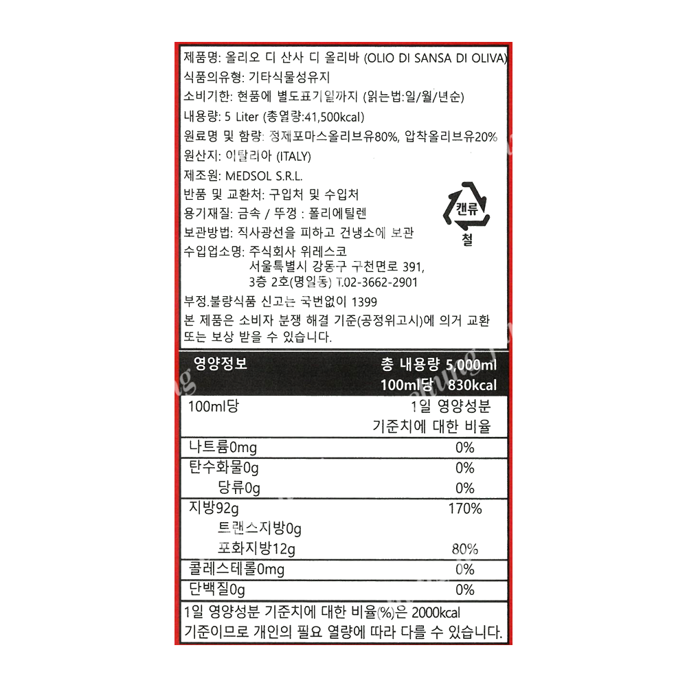 | 상품명 | 식용유(올리브유포머스오일,루글리오,5L) | 식품유형 | 상세설명참조 |