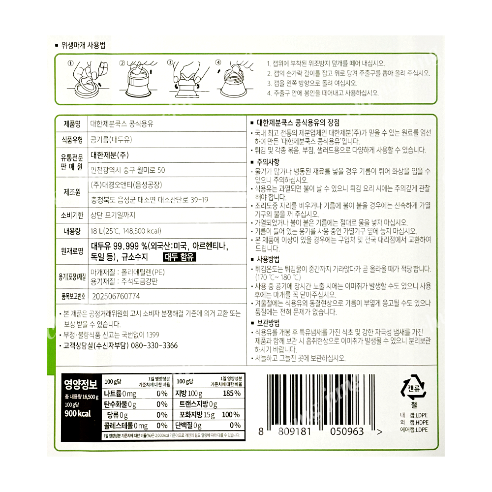 | 상품명 | 식용유(콩,쿡스,18L) | 식품유형 | 상세설명참조 |