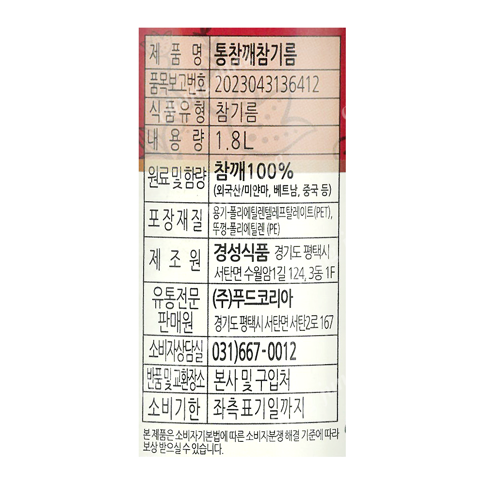 | 상품명 | PDN/참기름(통참깨100%,미담채,1.8L) | 식품유형 | 상세설명참조 |