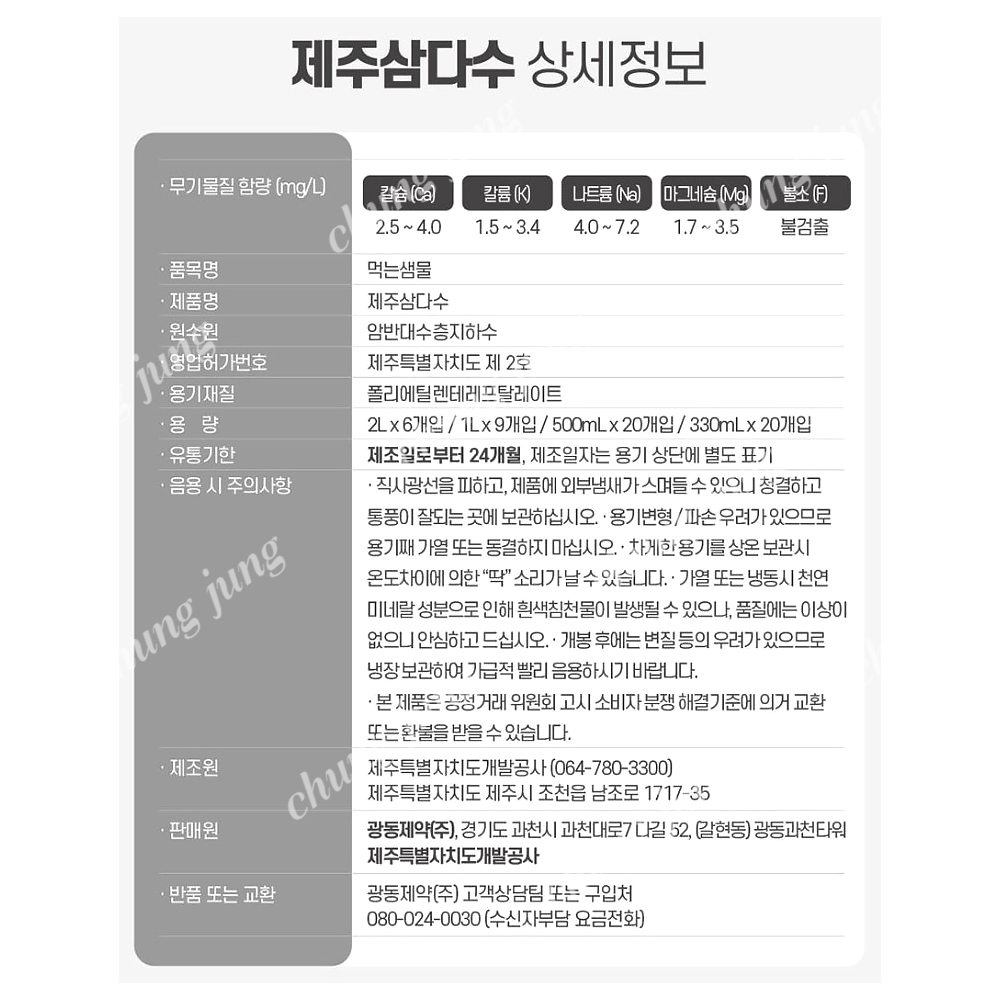 | 상품명 | 생수(제주삼다수(무라벨),2L*6입) | 식품유형 | 상세설명참조 |