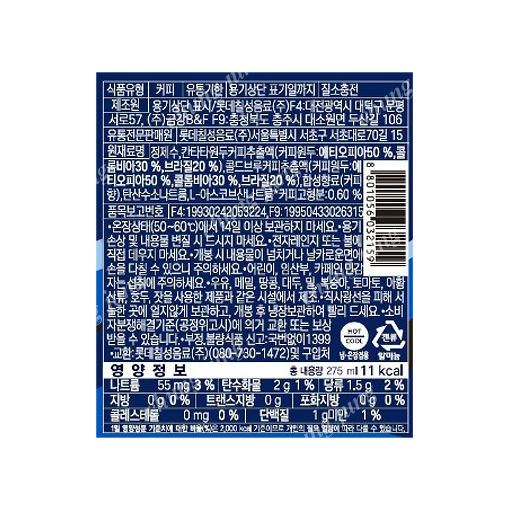 | 상품명 | 음료(칸타타콜드브루블랙,275ml) | 식품유형 | 상세설명참조 |