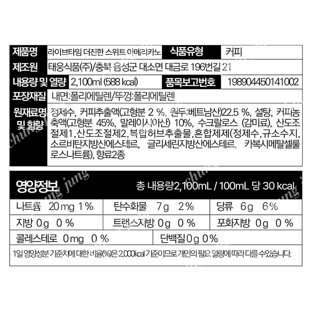 음료(라이브타임(아메리카노더진한스위트),2.1L)