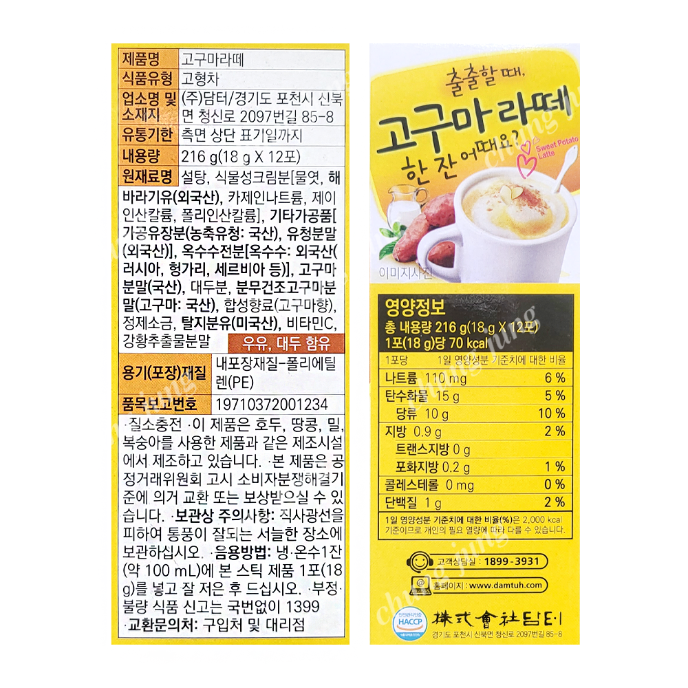 | 상품명 | 고구마라떼(담터,12T) | 식품유형 | 상세설명참조 |
