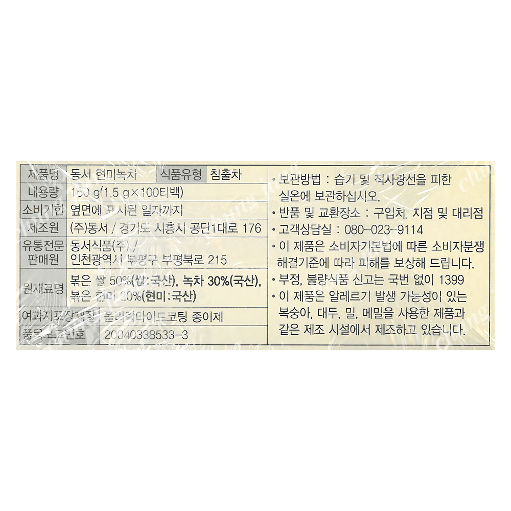 | 상품명 | 녹차(현미,가정용,100T/150g) | 식품유형 | 상세설명참조 |