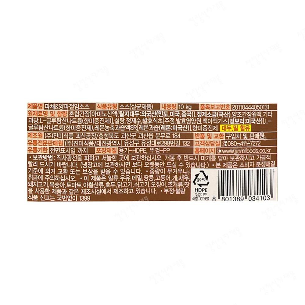 | 상품명 | 소스(잘되는맛집파채&양파,진미,10kg) | 식품유형 | 상세설명참조 |