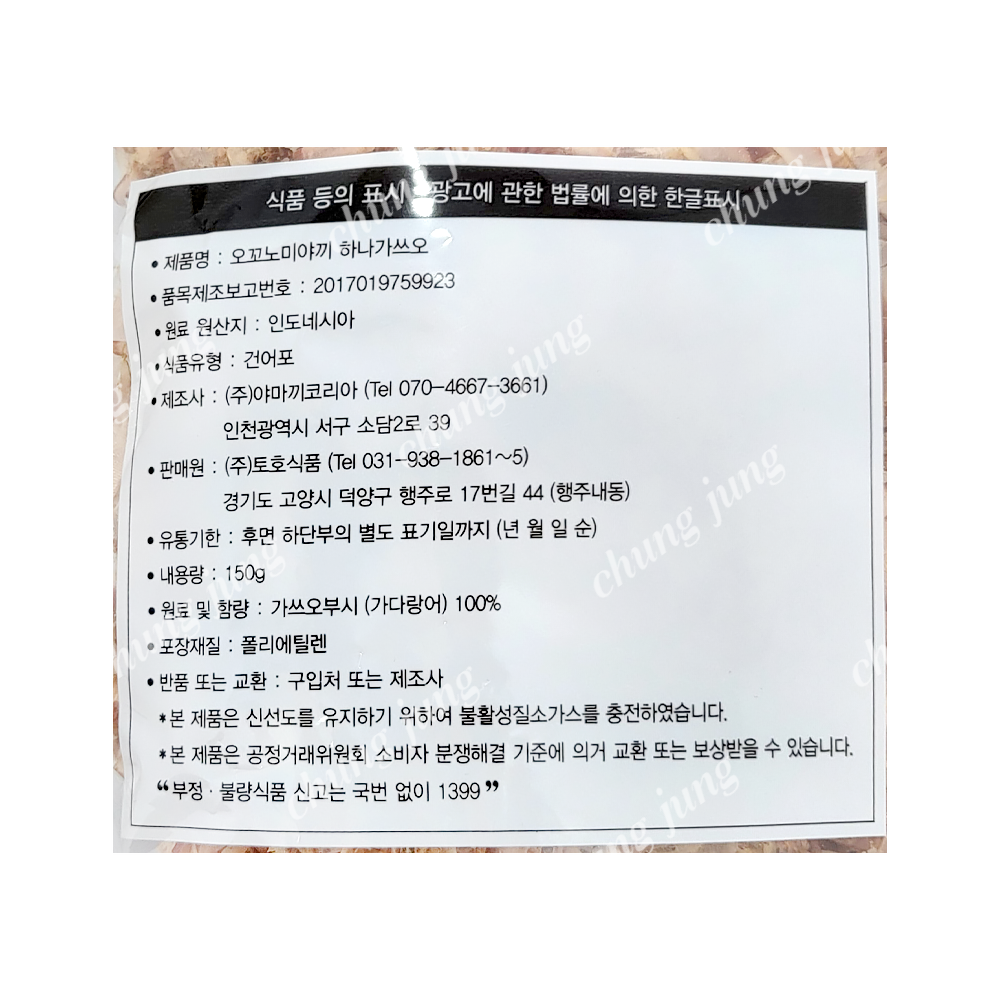 | 상품명 | 가쓰오부시(오꼬노미,하나,150g) | 식품유형 | 상세설명참조 |