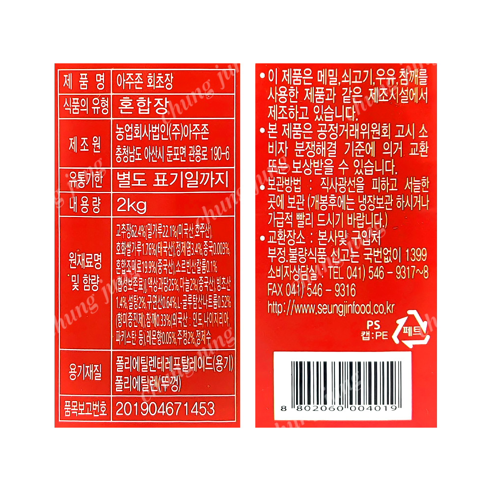 | 상품명 | 초고추장(회,양념,아주존,2kg) | 식품유형 | 상세설명참조 |